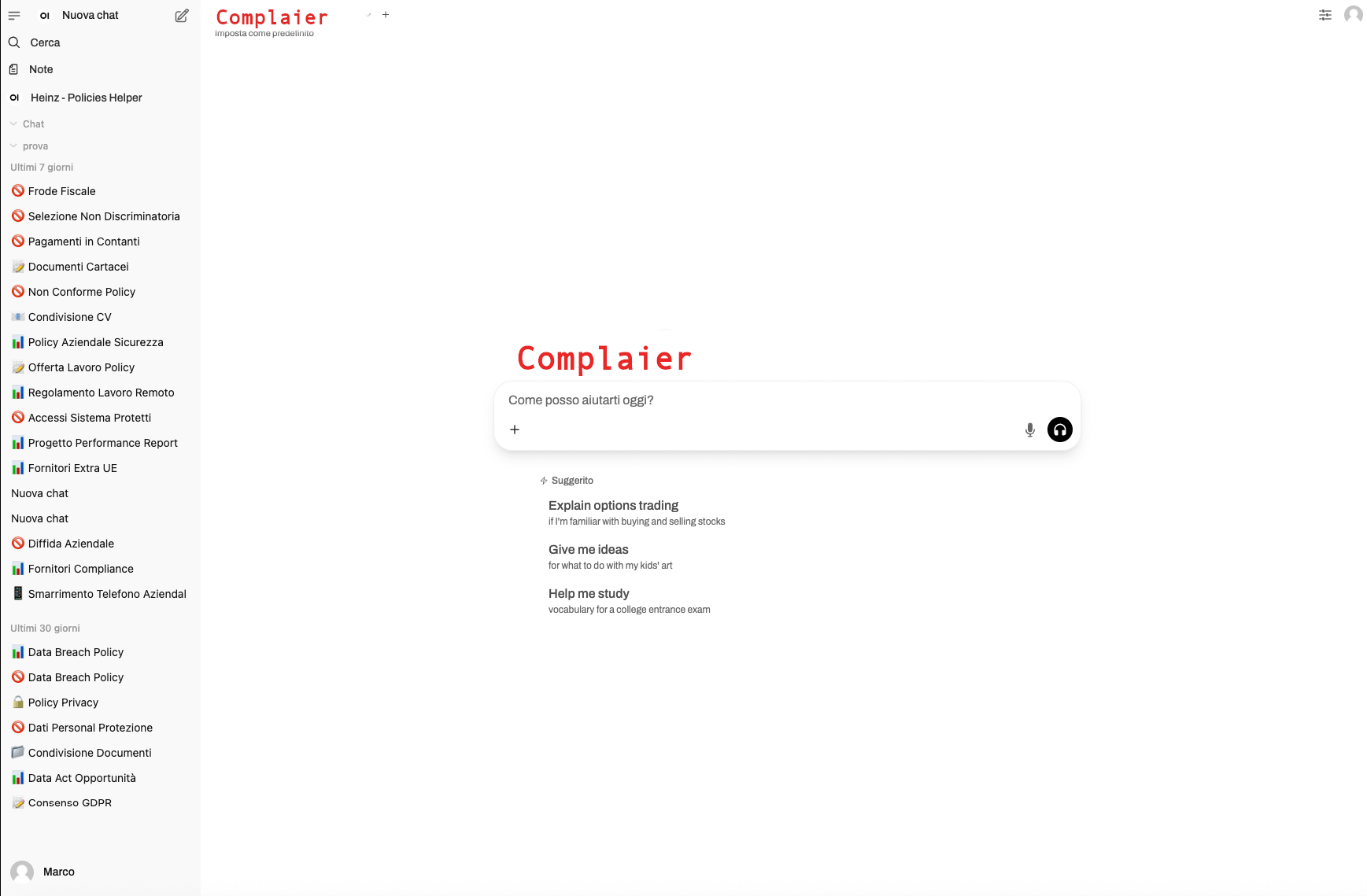 Complaier è un agente AI specializzato che opera su cloud del cliente, cloud EU certificati ovvero on-premise dal cliente.