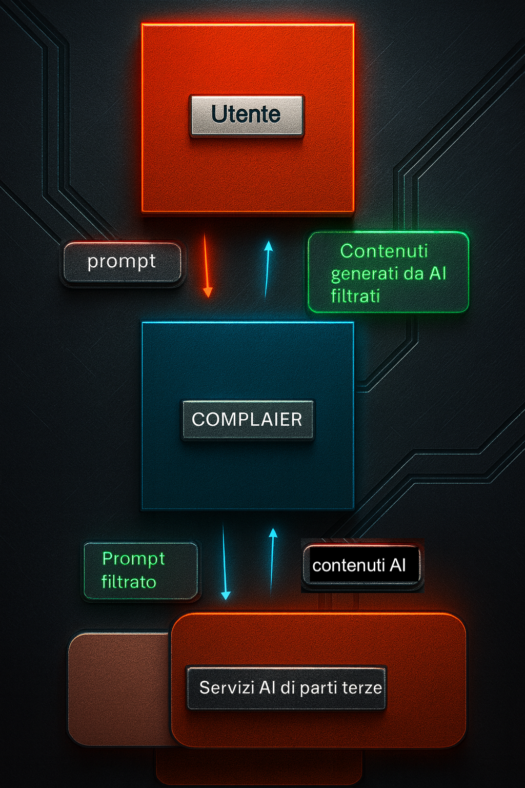 Verifica "in locale" la compliance del prompt e lo migliora, istruendo gli utenti, agevolando l'uso consapevole dell'AI e l'adeguamento dell'azienda e dello studio professionale ai requisiti di compliance.